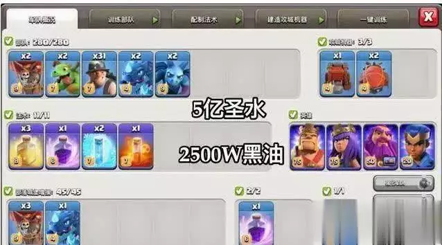如果时间少于100天,耗费少于50W黑油、1000W圣水,那就说明你离目标很近很近了,可以赶在14本前体验四王全满的舒适感。